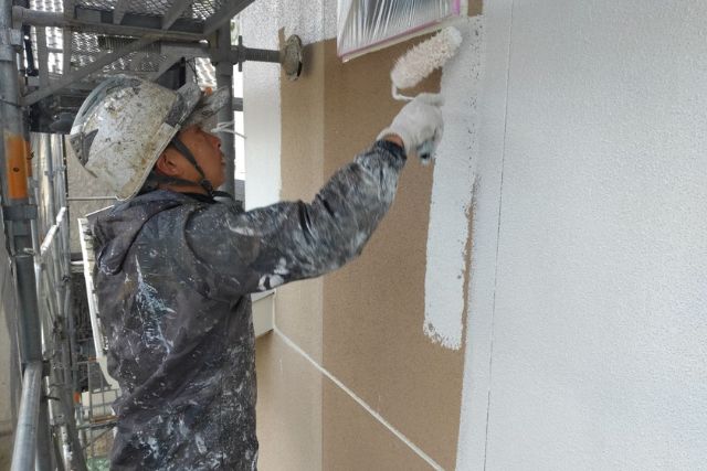 高圧洗浄で古い塗膜やカビを除去し、ひび割れが発生している部分には弾性パテのような補修材で補修します。また、劣化した外壁は塗料を吸い込むのが厄介です。吸い込み防止のために、下塗り材であるシーラーを塗布し、上塗り塗料を密着させて劣化対策をします。