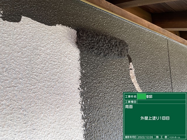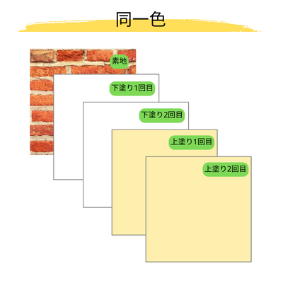 塗装は全体を均等に塗らなければなりません。上塗り1回目と2回目を同じ色で塗ると、どこまで塗ったか分からなくなるのではないかと不安のお声をいただくことがあります。