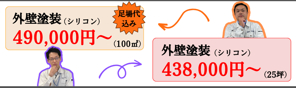 「安い金額」にはさまざまなカラクリがあります。人件費・施工費・材料費などを考えると「他より何十万も安いのに高品質な施工」というのは不可能です。どこかの金額を減らして施工すると塗装した直後はわかりませんが、2~3年が経過すると異変が起こり始めます。