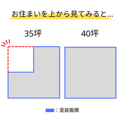 このように例え坪数が同じだとしても1軒1軒お住まいによって塗装面積は異なります。よって、「〇坪〇円」という表記は塗装には全く関係のないものなのです。塗装の見積りを依頼する際は、きちんとお住まいを隅々まで測って見積りを出してくれる業者にお願いしましょう。