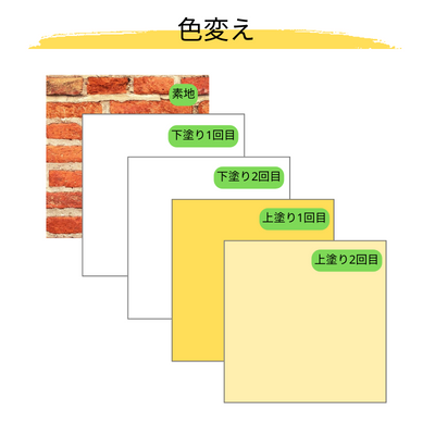 上図は上塗りの色変えと同色を比べたもの、仕上がりの色はどちらも上塗り2回目の色です。