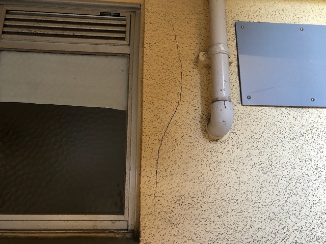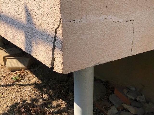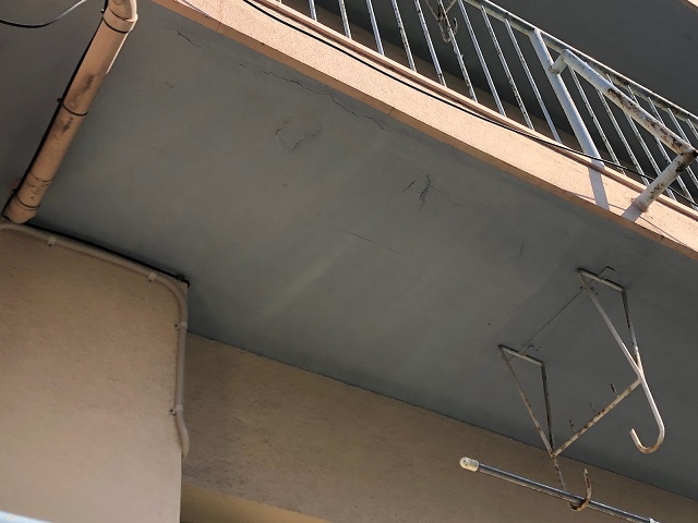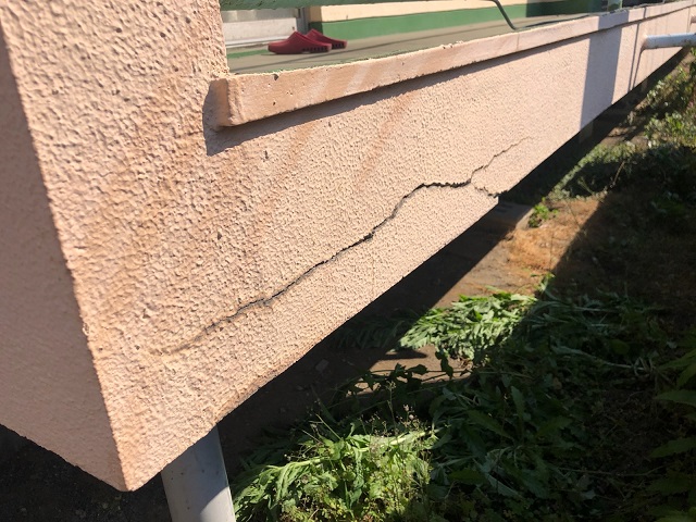 鉄筋コンクリート建築物はサイディング外壁に比べてクラックが大きくなりやすく、雨などの水分がクラックや防水効果の低下した箇所から侵入しやすいです。ひび割れから雨漏りが発生する恐れがあることはもちろんですが、処置を後回しにしてしまうと『爆裂』してしまい、コンクリートが欠落する可能性があります。これは低い位置・高い位置に関係なく大変危険ですので、ひどくなる前の診断とメンテナンスをおすすめします。