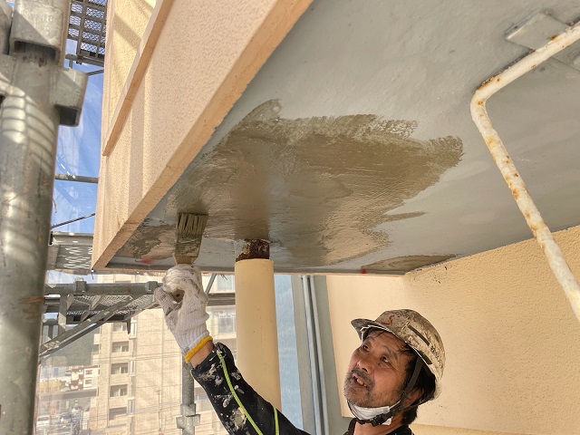X-3工法は「下地調整」「プライマー(接着効果)」「ベースコート2回」「トップコート1回」の順で施工します。塗装のみの防水工事なのでX-1工法よりも耐久性は劣りますが、費用を安く抑える事が可能です。その分の費用を他のメンテナンス費用にあてたいという方はX-3工法がおすすめです。