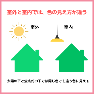 そのため、外壁塗装の色を考えるときは、室内ではなく室外で選ぶことがポイントになってきます。