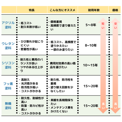 短いスパンでお住まいのイメージチェンジを考えている場合と、塗り替え頻度を少なくしたい場合とでは