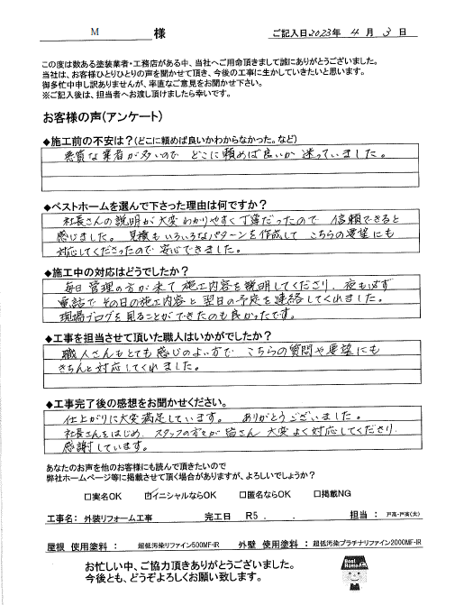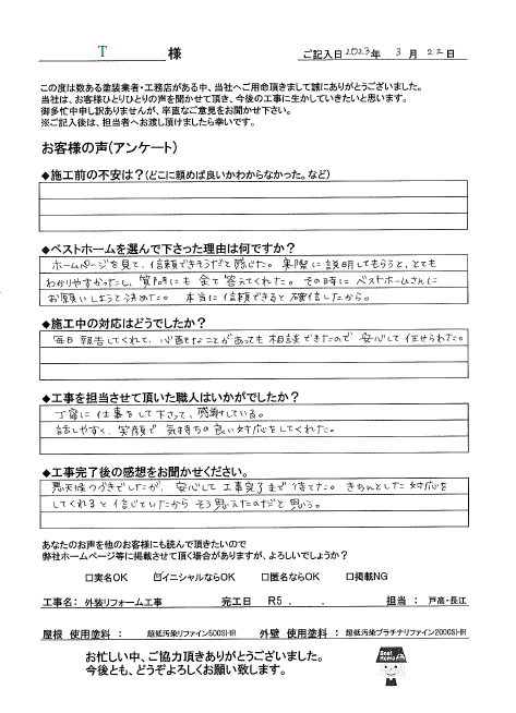 お客様の声15 - ベストホーム株式会社