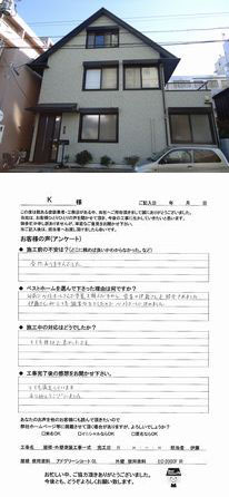 朝の作業前の開始の確認、作業後の作業内容の報告があり、かつベストホーム担当者の電話による報告もあり、状況把握や要望伝達が出来良かった。塗装業者をやられている方の感じの良さもあり、且つベストホームの適時の来訪指導がみられ安心していたれた。
